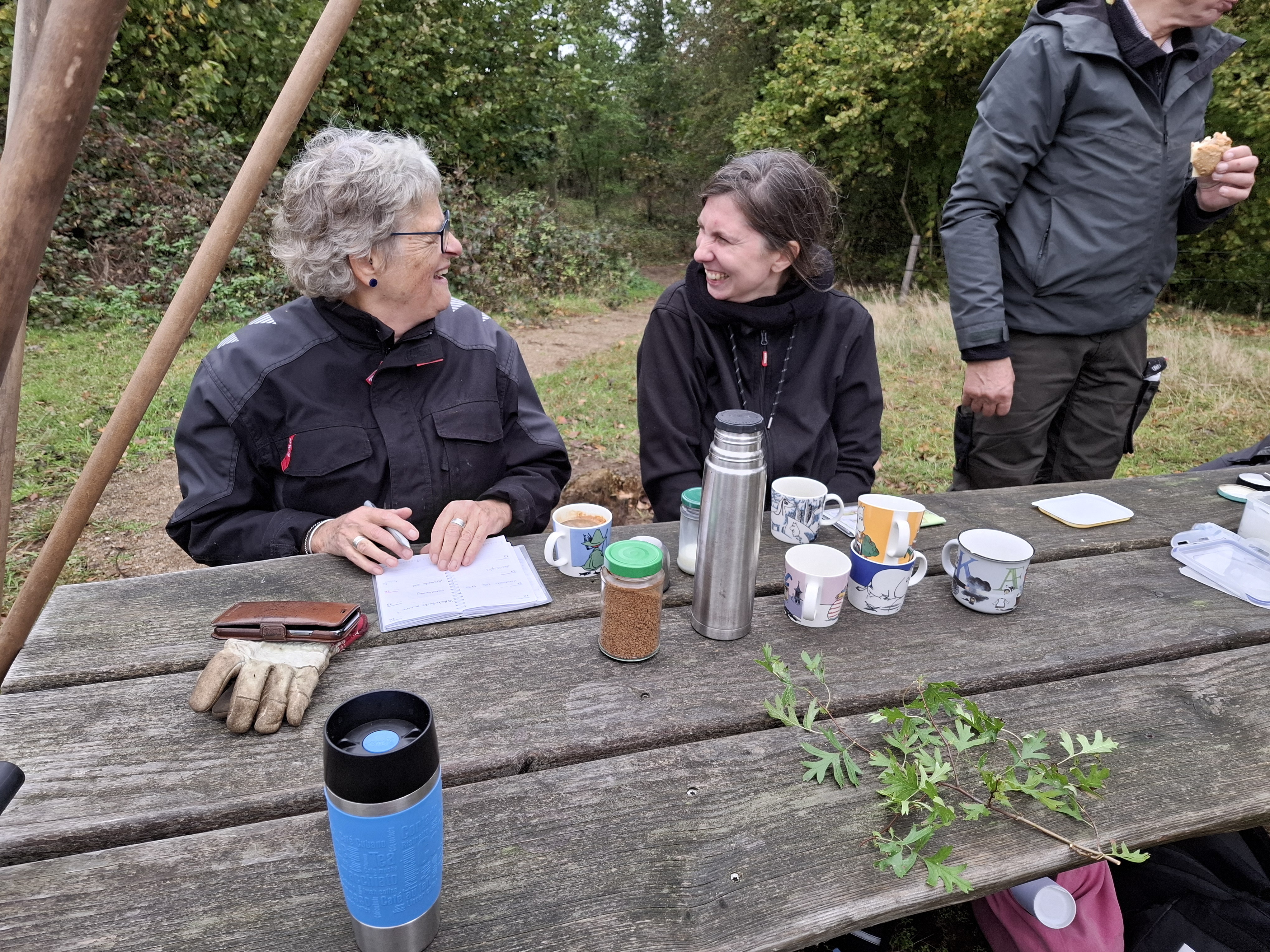 En helt almindelige plejedag, lidt gråt i vejret og lidt små regn. 10 var mødt op og kommunen havde folk ude til at ordne hegn. Vi havde besøg af en kollega fra DN Faxe.Køerne bød os velkommen, da vi mødte ind på banken.